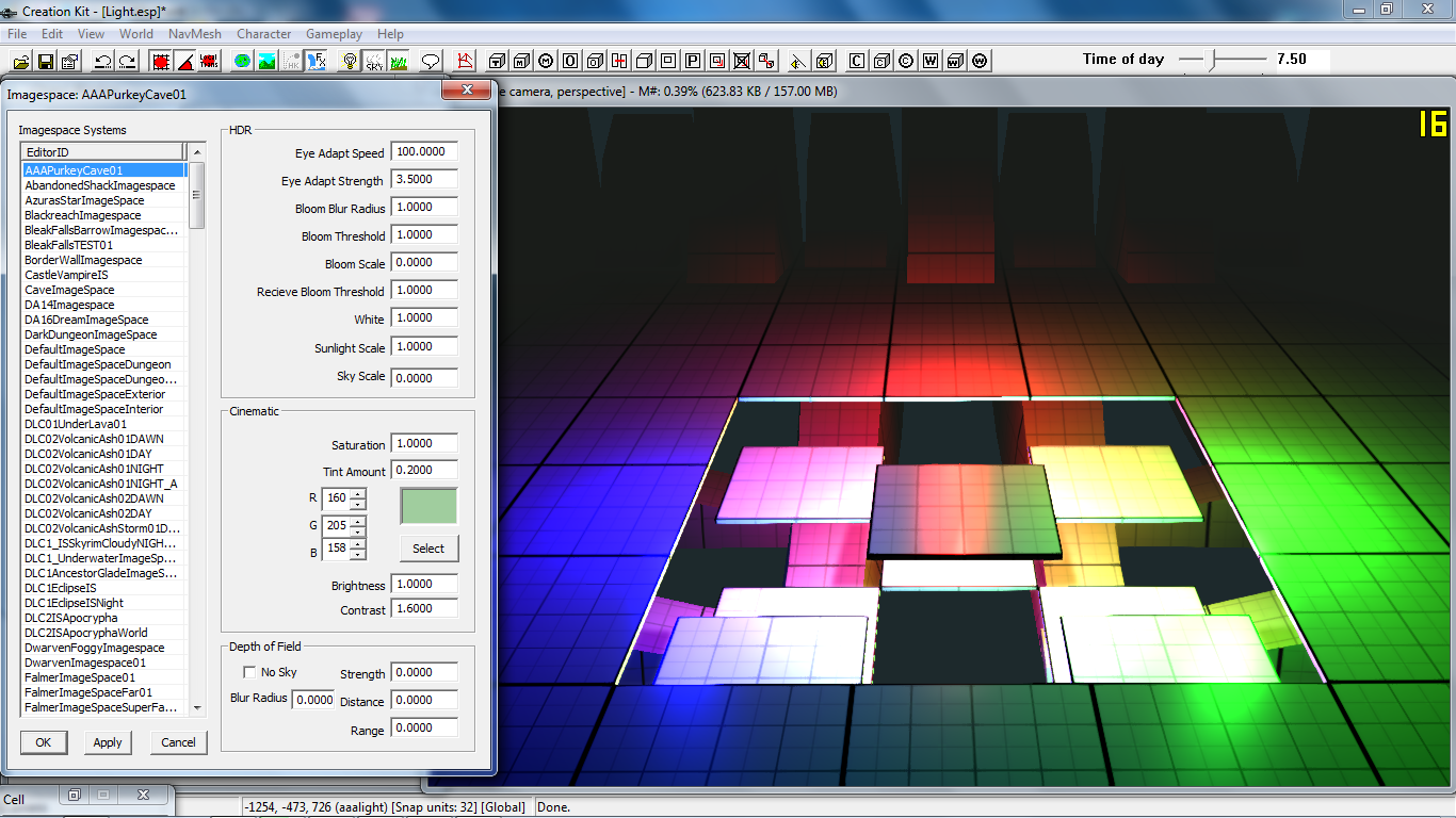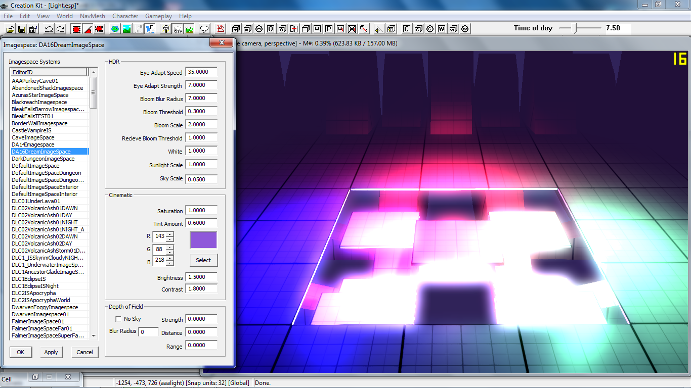 ImageSpace — пост обработка кадра. Настройка интенсивности размытия, размера солнца и прочее. Проживает по адресу SpecialEffect > Imagespace и Imagespace Mod. Локации используют просто Imagespace: