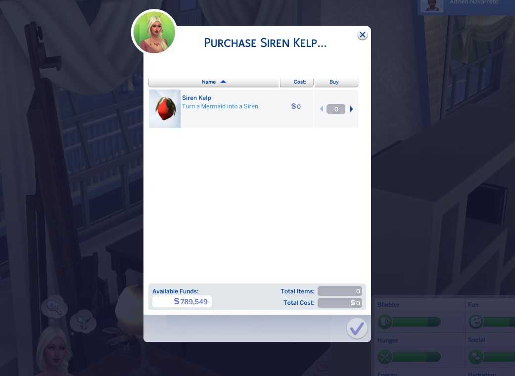 To turn your mermaid into a siren, you will need to purchase Siren Kelp from your sim’s PC. Once eaten, your new siren gains a thirst bar like a vampire.