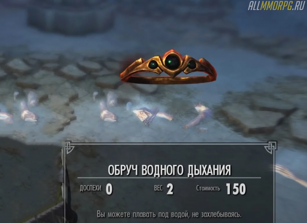 В Скайриме полно потаенных мест, где спрятаны сокровища. Чтобы достать некоторые из них, нужно нырять глубоко под воду. Но так как Драконорожденный не умеет дышать под водой, он может утонуть.