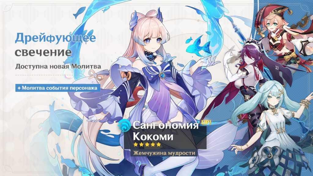 Сангономия Кокоми – божественная Жрица острова Ватацуми. Гидро-каталистка, персонаж поддержки, хиллер. По исцелению занимает одну из самых высоких позиций в игре, поэтому является универсальным героем для любой команды. Кокоми также будет полезна для игры через реакции с Гидро, так как отлично накладывает пассивный Гидро-статус. С выходом Фонтейна она станет еще актуальнее, так как в нем появятся новые механики и загадки, завязанные на Гидро-элементе. Поэтому выбивайте Кокоми, если вам нужен стабильный и универсальный персонаж поддержки и мощный хиллер. Подробнее о сборках и персонаже читайте в гайде.