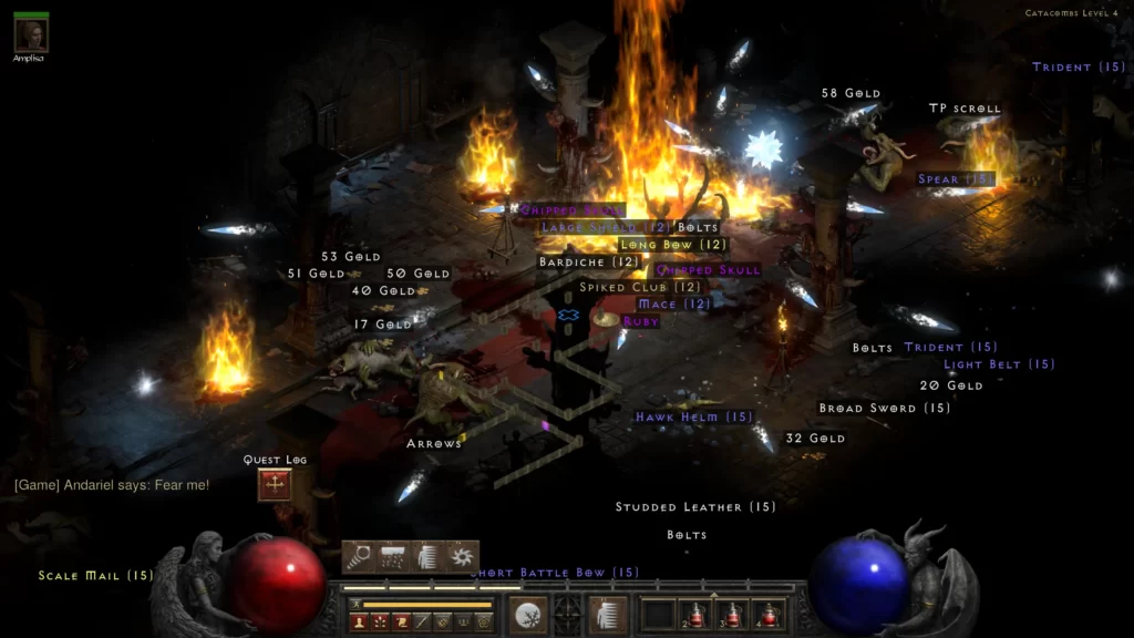 Сомневаюсь, что этот материал могут читать люди, незнакомые с Diablo II: икона жанра action-RPG, как-никак. Парадокс в том, что никакого экшена и почти никакой ролевой составляющей, кроме прокачки, здесь нет. Это не Bloodborne и тем более не The Witcher 3 — не ждите ни боевой акробатики, ни моральных дилемм, ни вариативных диалогов. Что уж там, здесь даже за квесты опыта не дают: почти всё развитие — только через истребление бесчисленного количества врагов. Кликнул мышкой по монстру — получил труп, кликнул по второму — ещё труп. Зажал клавишу — получил десять трупов.