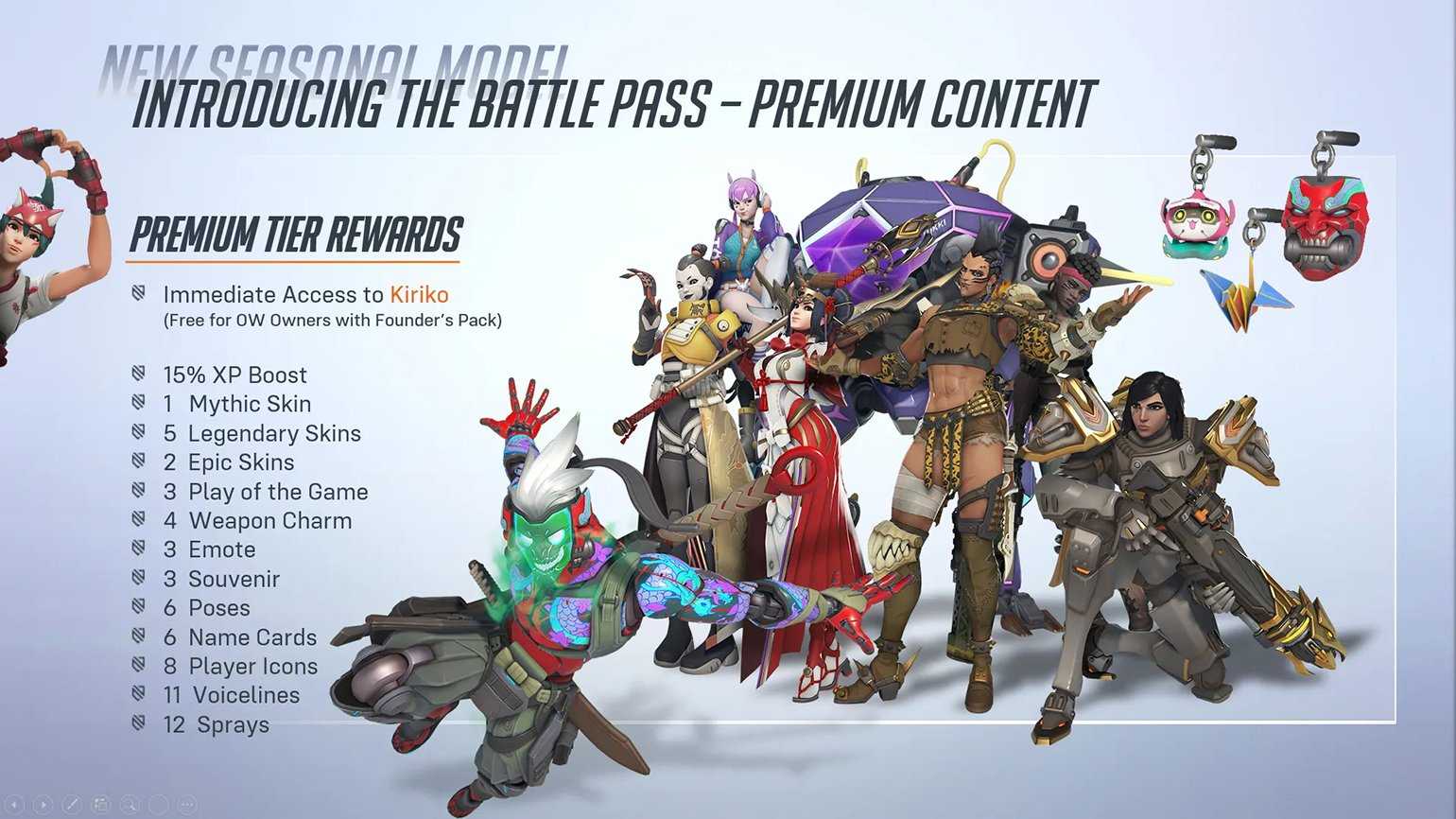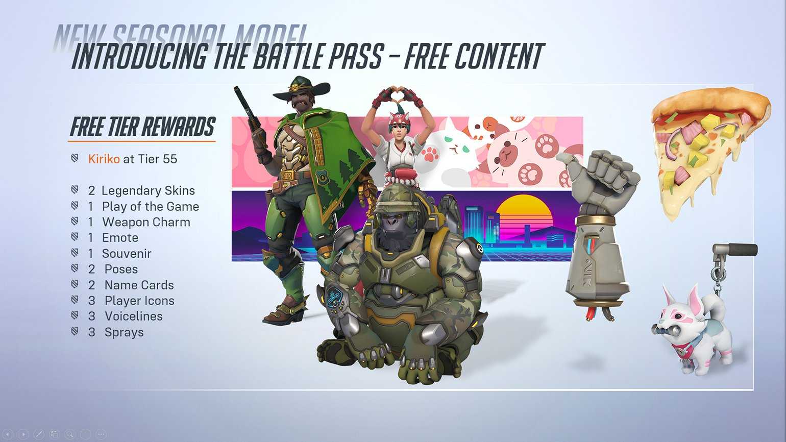 Blizzard не только сделала Overwatch 2 бесплатной, но и отказалась от лутбоксов. На смену им приходит система боевого пропуска, обновляемого каждый сезон. Игрокам будет доступно два вида такого пропуска — платный и бесплатный. Количество и ценность наград в них будут различаться.