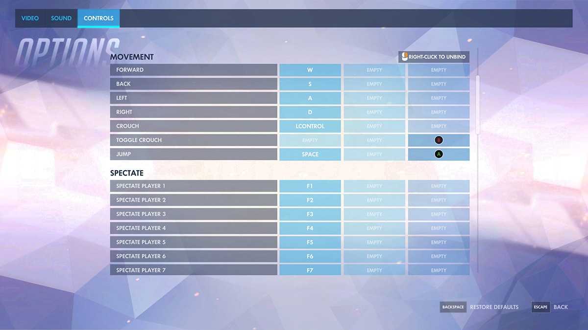 Полный список клавиш управления можно найти в меню «Настройки» > «Управление» > «Наблюдение». Сочетания клавиш легко настраиваются, как и любые другие элементы управления в Overwatch.