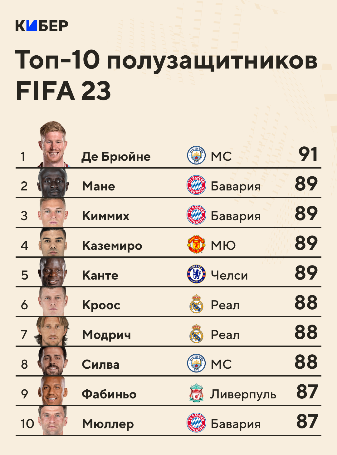 • Кевин Де Брюйне – лучший полузащитник FIFA 23. С рейтингом 91 бельгиец оторвался от ближайших преследователей на два очка и остался единственным хавбеком мира, который имеет шансы побороться за «Золотой мяч».