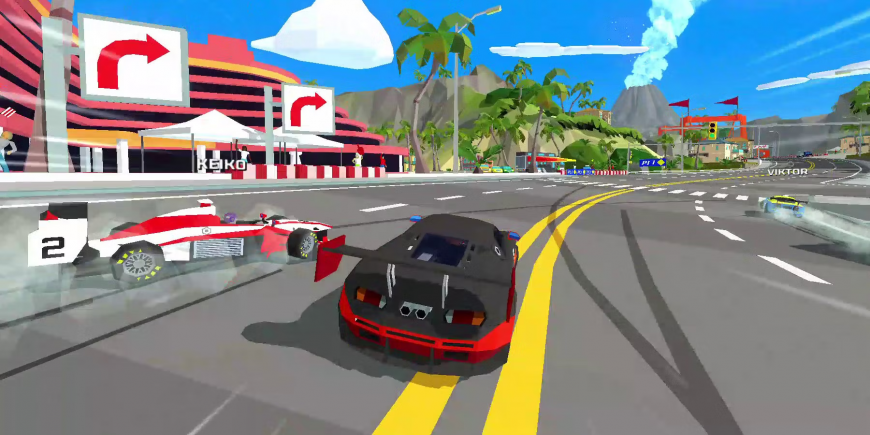 Игра Hotshot Racing — это возвращение к классическим аркадным гонкам, таким как Virtua Racing и Daytona USA, и ее вдохновение гордо красуется на капоте. Используя яркий, блочный художественный стиль, который просто кричит об аркадах 90-х годов, эта очаровательная гонка включает в себя восемь гонщиков и более 30 нелицензированных автомобилей, которые отдают (очевидную) дань уважения узнаваемым машинам.