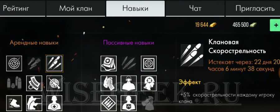 Все преимущества, которые дает игроку клан — это навыки, которые делятся на 2 типа: