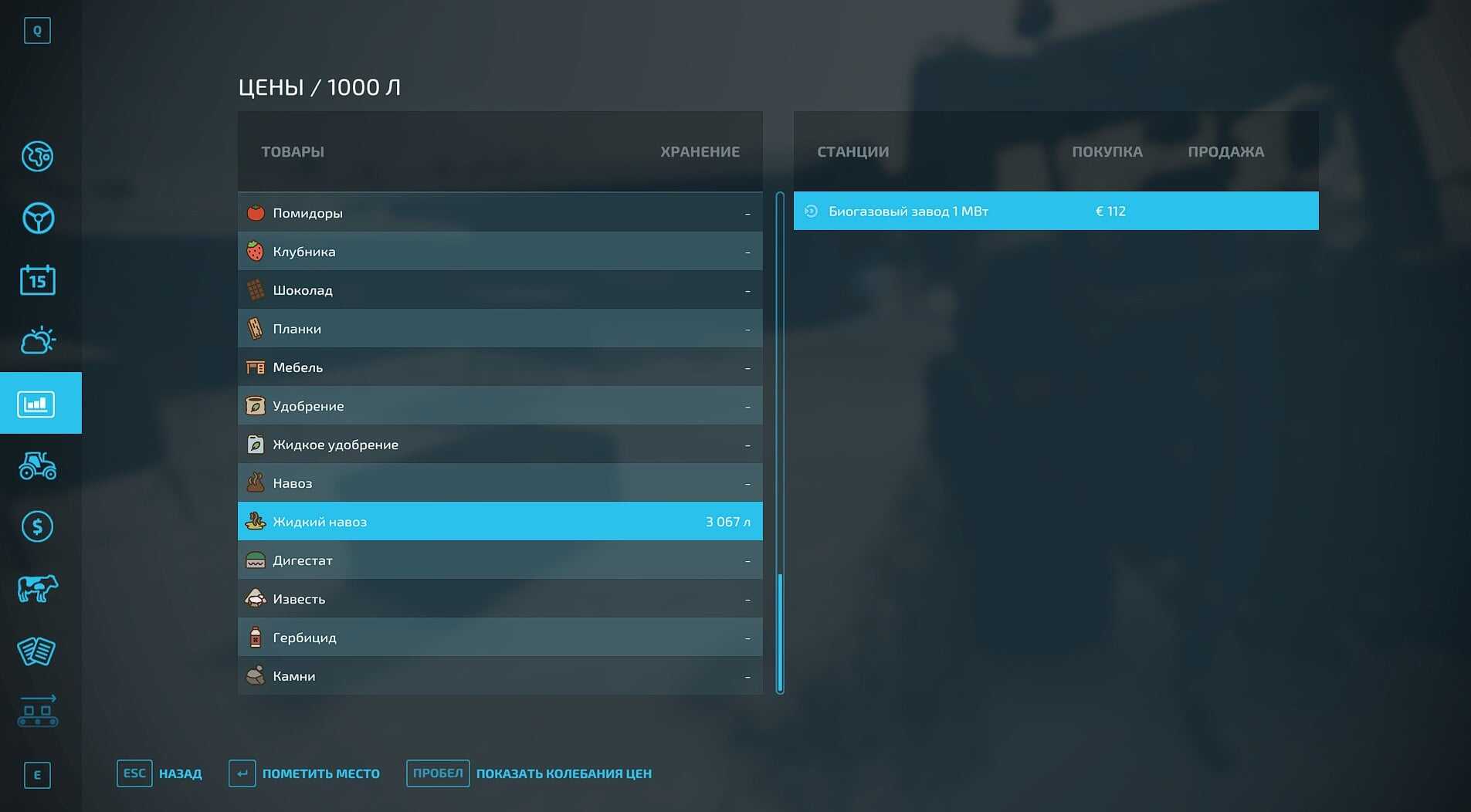 В пятой вкладке магазина вы можете просмотреть инвентарь растений, хранящихся в силосах (сырье, хранящееся в машинах / на земле, не учитывается). В этом списке, выбрав конкретный элемент, вы увидите точки сбора, которые после выбора могут быть отмечены на карте (по умолчанию Enter ). Вы также увидите и сравните предлагаемые на данный момент цены за 1000 литров продукта.