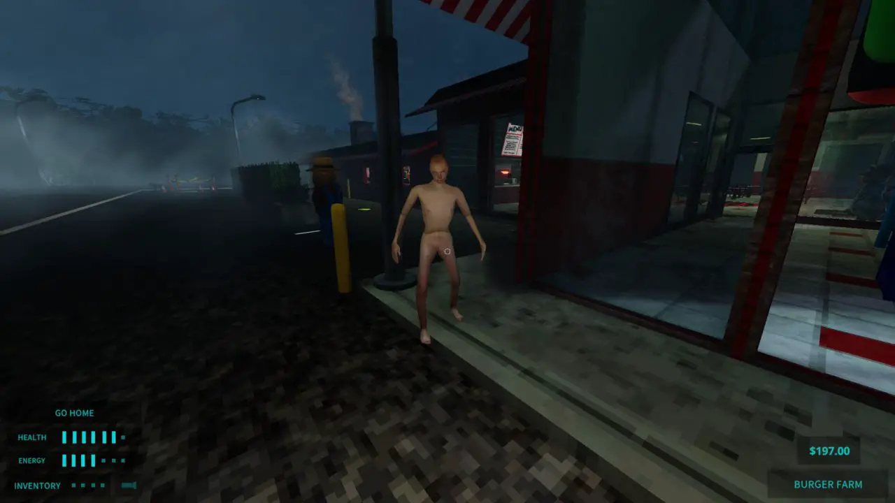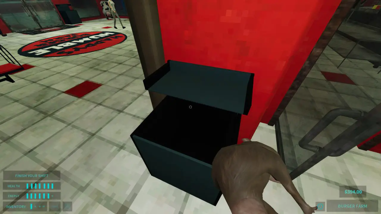 The game begins with your character on an operating table as a mind-control device is placed in your head. The two surgeons discuss the operation, but then pivot to a more important topic: lunch. Before you know it, you wake up in a crummy apartment and you’ve been hired by the titular fast food restaurant. Also, much of the world around you may not be real. You’re meant to go to work at the restaurant. But Happy, the cow depicted in all the advertising surrounding the chain, is a living being. If you mess up at your job, Happy will murder you.