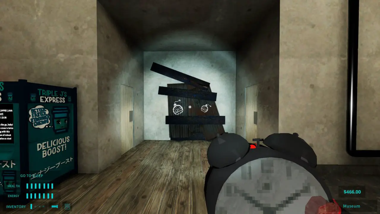 After your hot dog shift, you’ll leave work to find the museum is now open! Head on in to explore, or go home. Your choice…