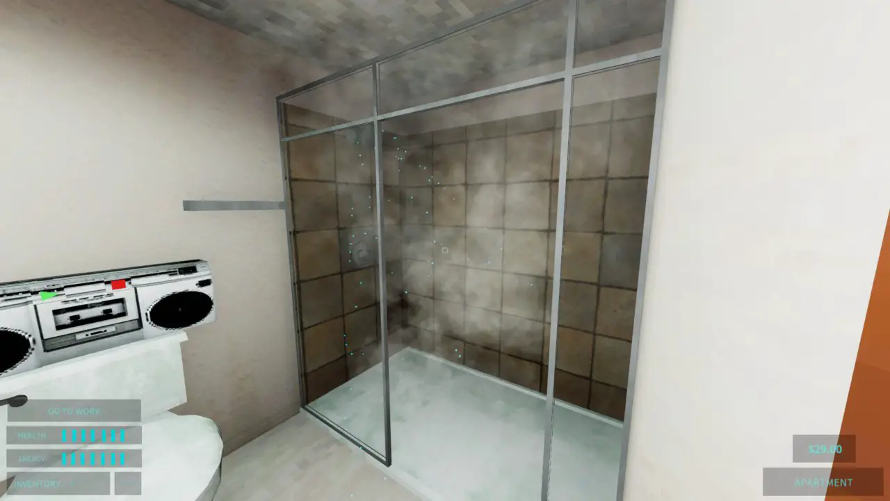 In your apartment, you’ll see you have a shower. Hit the knob, stand under the spray, and you’ll get free health and energy whenever you want.