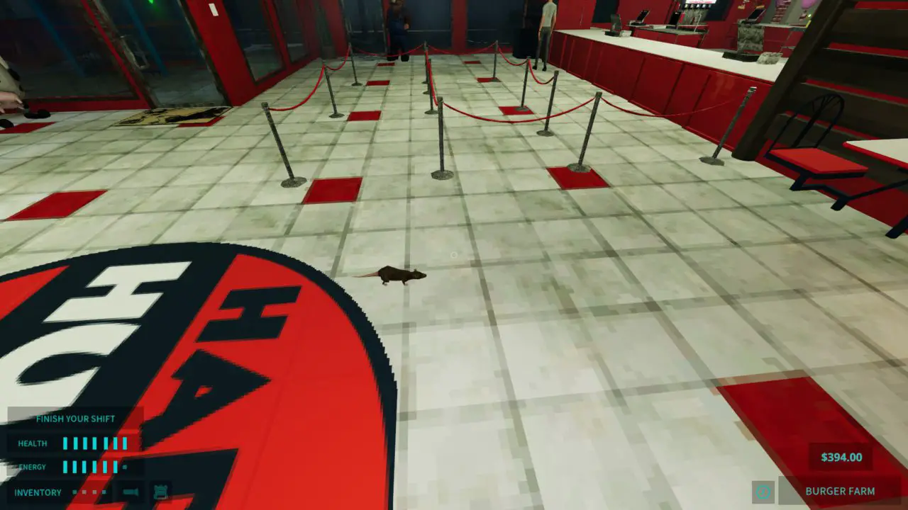 There’s a rat in the lobby. If you get this, track down the rat, typically where customers stand, crouch down and smack it. Pick it up and toss it in any trash can to clear the event.
