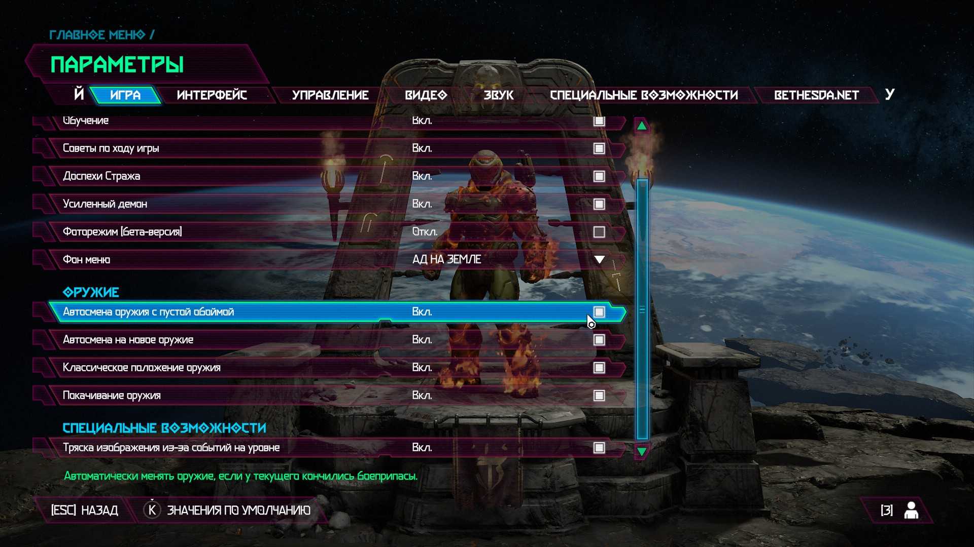 Как я писал, настроек в игре уйма, и я рекомендую пройтись по ним после туториала. Например, выключить автосмену оружия — вы не представляете, сколько раз я стрелял в упор из ракетницы, когда заканчивались патроны в дробовике