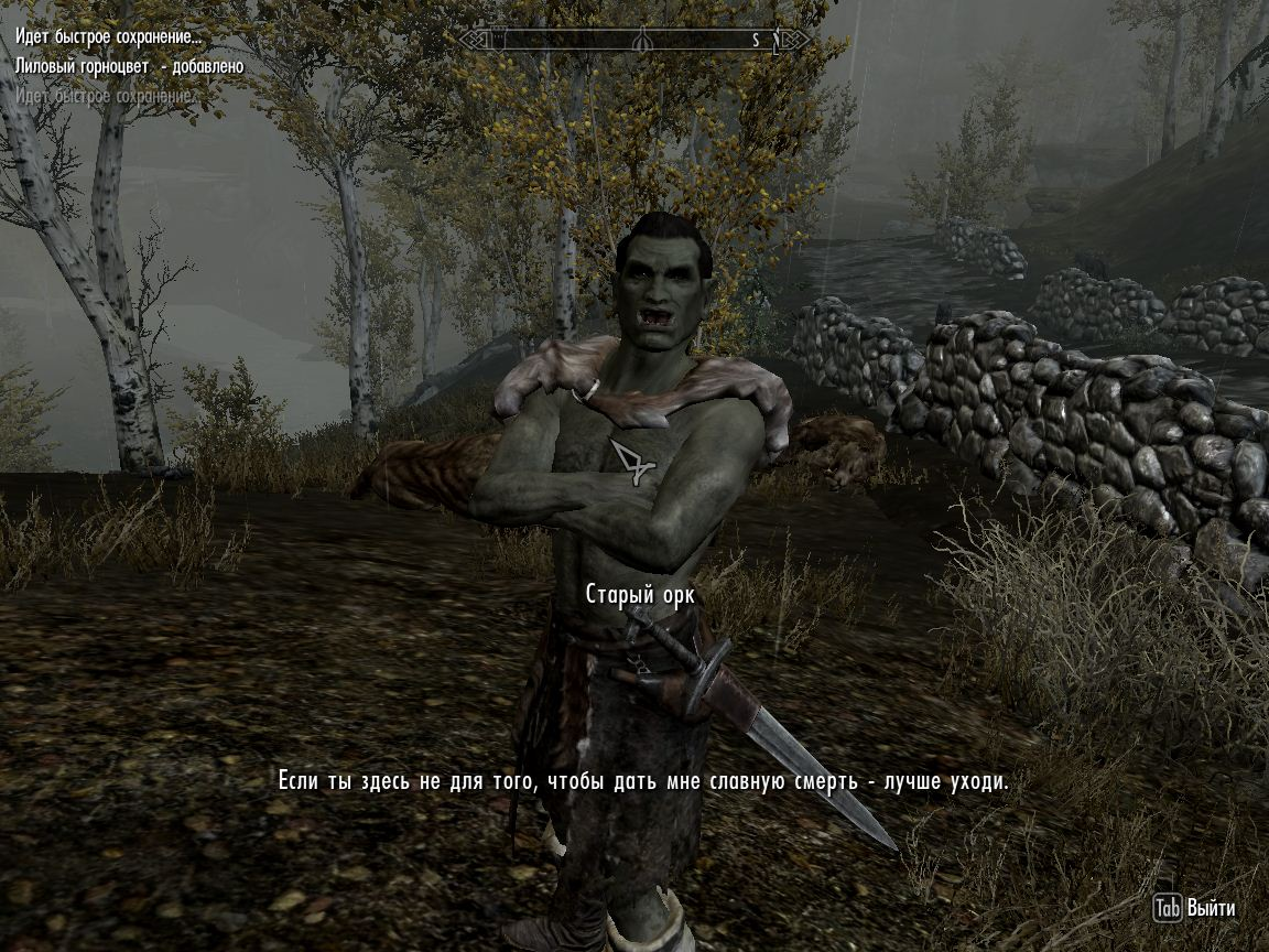 Например, вы можете встретить орка, убившего пару саблезубых тигров. Заговорив с ним, вы узнаете, что он уже стар и ищет славной смерти. Вы лучше узнаете населяющих Тамриэль персонажей именно благодаря таким событиям.